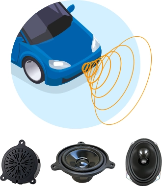 歩行者への車両接近の通知や事故時の緊急通報システムなどに使用されるスピーカー類