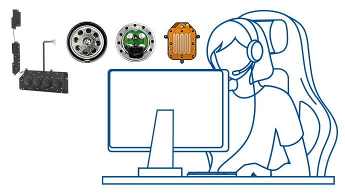 ヘッドホン/ヘッドセット、イヤホン、イヤホン用ドライバー及び振動アクチュエータ等の製造・販売