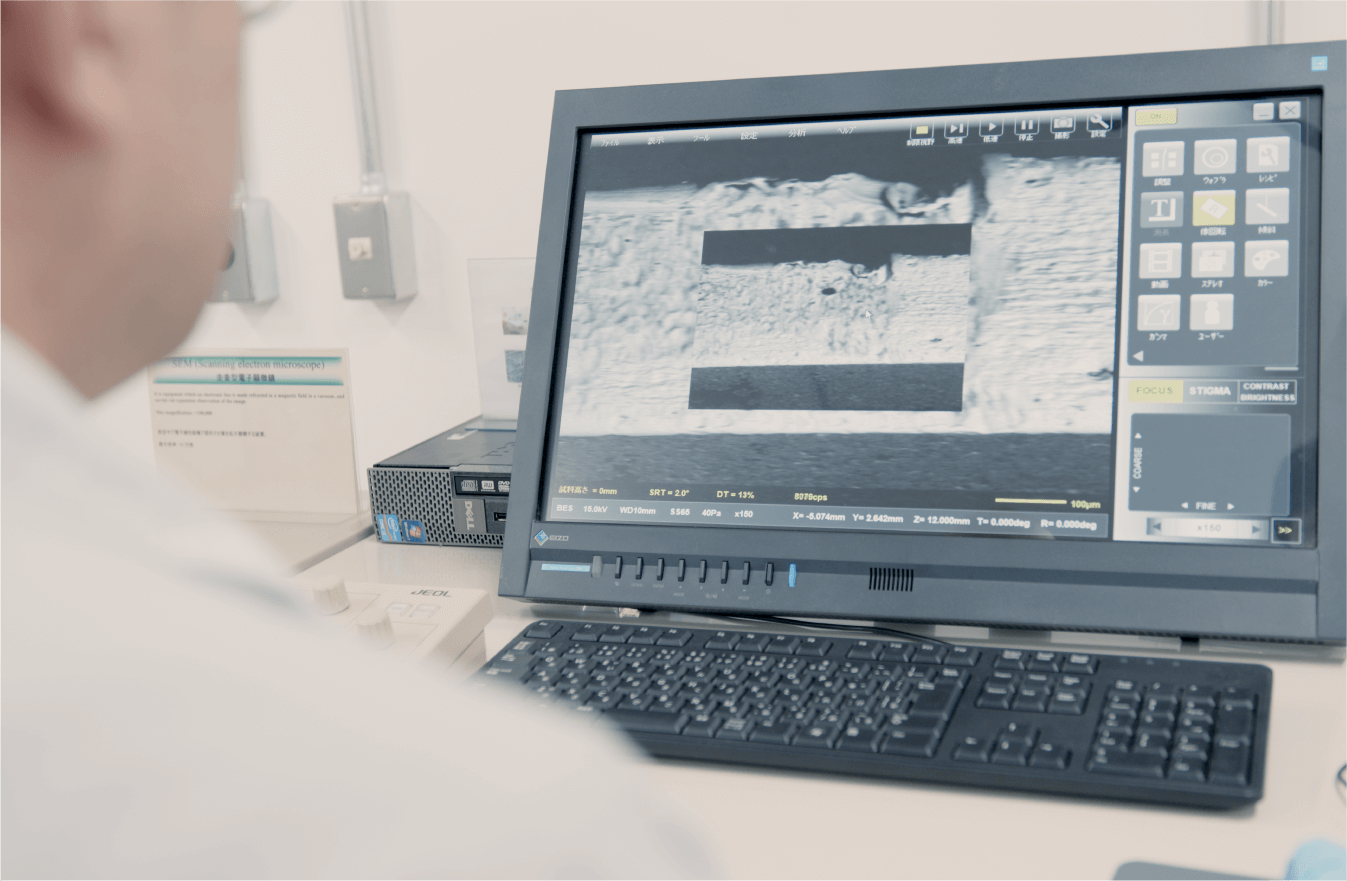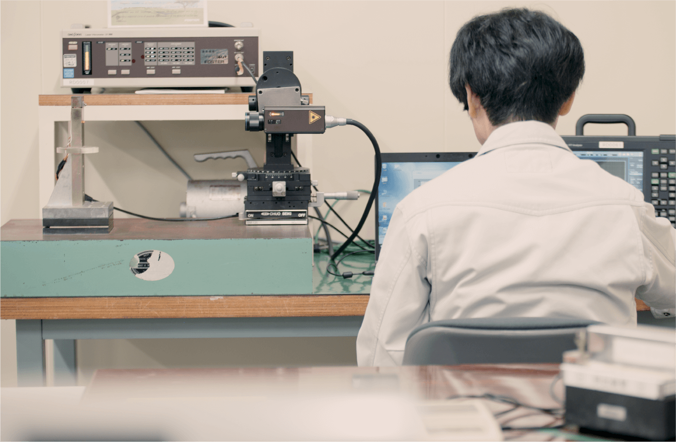 この施設で得られるデータは、内製部品の性能評価を具現化する「証明書」に近く、お客さまへ技術提案や説明を行う際の心強い味方となります。また、自社に分析専用の施設を作り、多角的に測定・分析を行うことで、膨大な技術データが蓄積されます。このデータは、開発分野では新たな材料や部品の開発に使われ、品質保証分野ではトラブルの未然防止などに役立てられます。