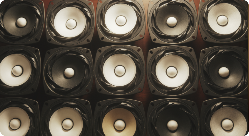 スピーカの音質に影響する部品は、コーン紙以外にも、ボイスコイルや磁石など多くあります。これら全てを調和させ、よりよい音を届ける。それが部品をも製造しているフォスター電機の魅力です。