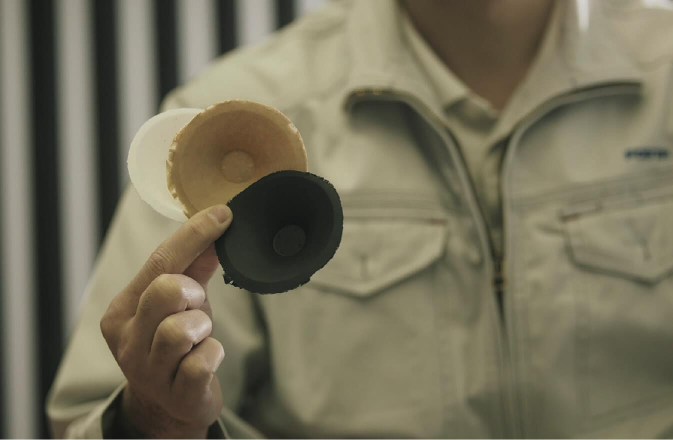 コーン紙は素材である紙の調合によって、驚くほど音が変化します。その調合を自由自在に整え、理想の音を実現する。これがフォスター電機の強みに繋がります。