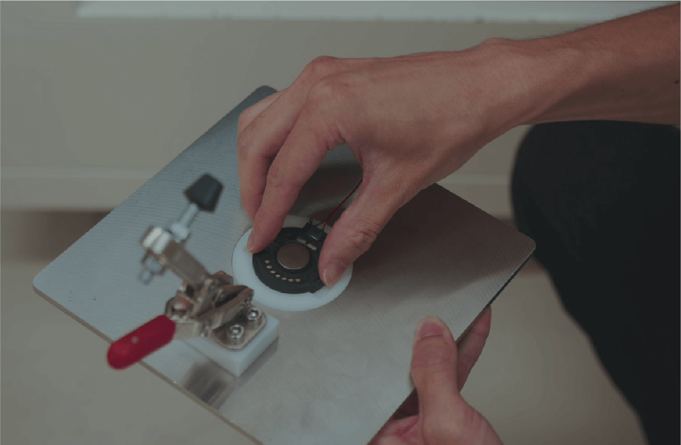 音のスペシャリストとして音響機器を作るフォスター電機ですが、実は「安心・安全を守る音」も生み出しています。その舞台となるのが、静岡オフィスです。小型音響部品事業を担う拠点であり、主に機器の操作確認や異常などを知らせるための「報知音」を鳴らす車載スピーカの、開発及び販売を行っています。
