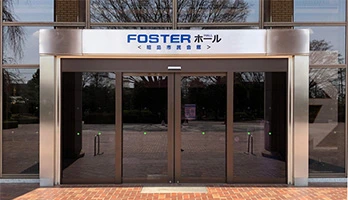 2014年から昭島市市民会館のネーミングライツ(施設命名権)を取得し、「FOSTERホール」として親しまれています。ロゴの青字部分FOSTERとALLには、ご使用になるすべての人々を育むホールであって欲しいという当社の強い願いが込められています。